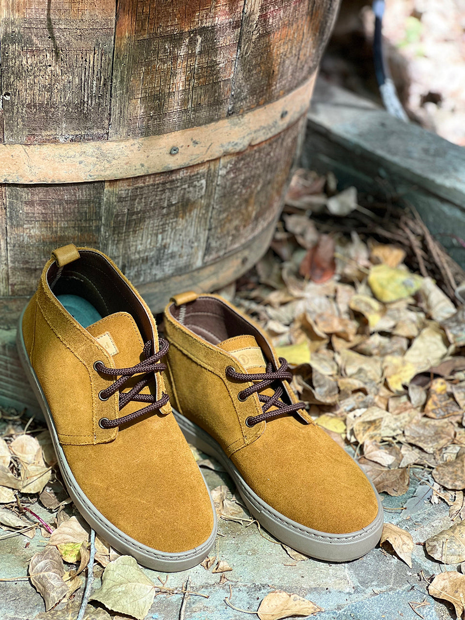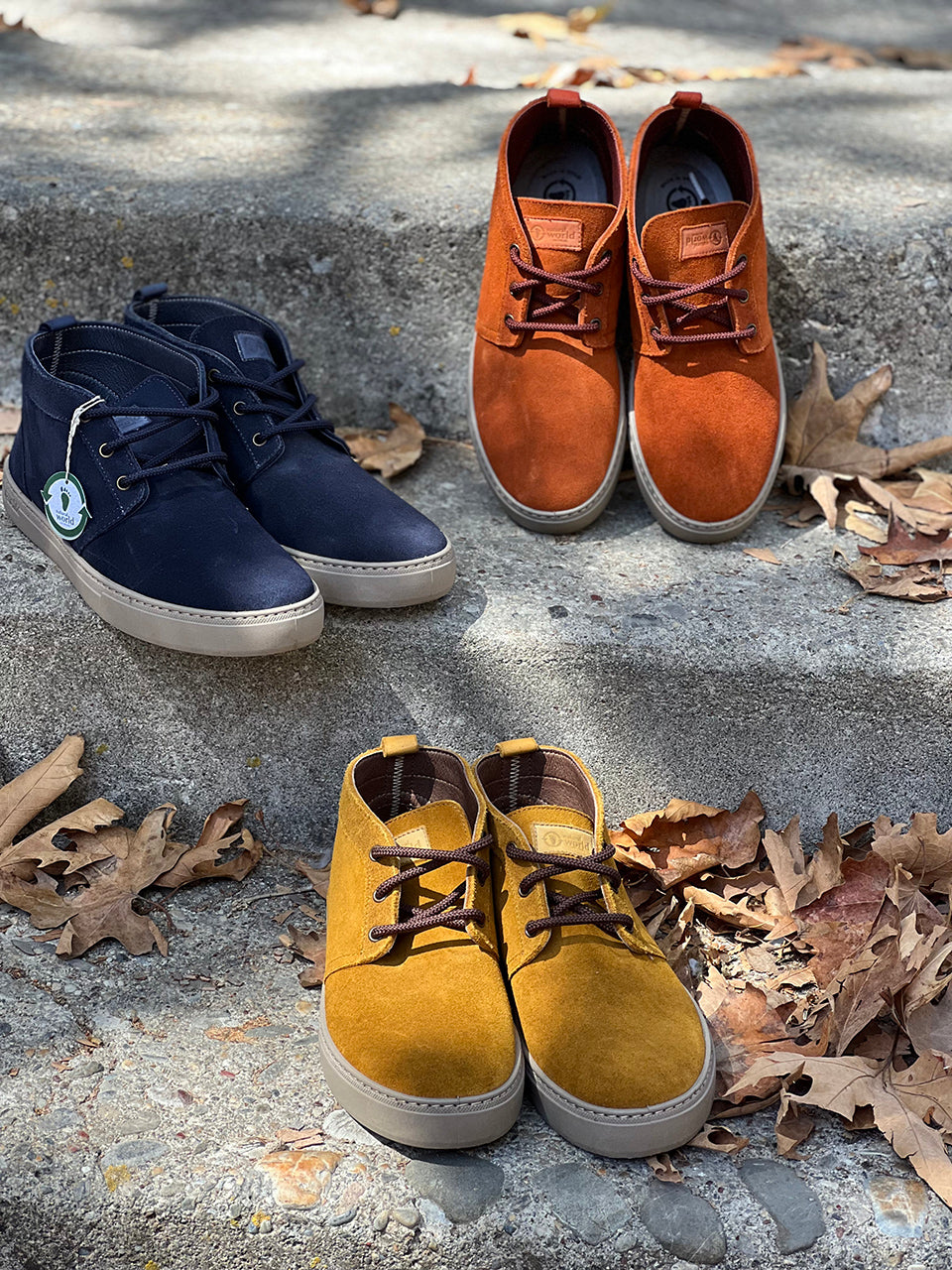 Το επάνω μέρος είναι από συνθετικό δέρμα σουέντ, η σόλα από φυσικό καουτσούκ. Έρχεται σε κουτί από ανακυκλωμένο χαρτόνι, κάτι απαραίτητο για όσους θέλουν να συμβάλουν θετικά στο περιβάλλον.