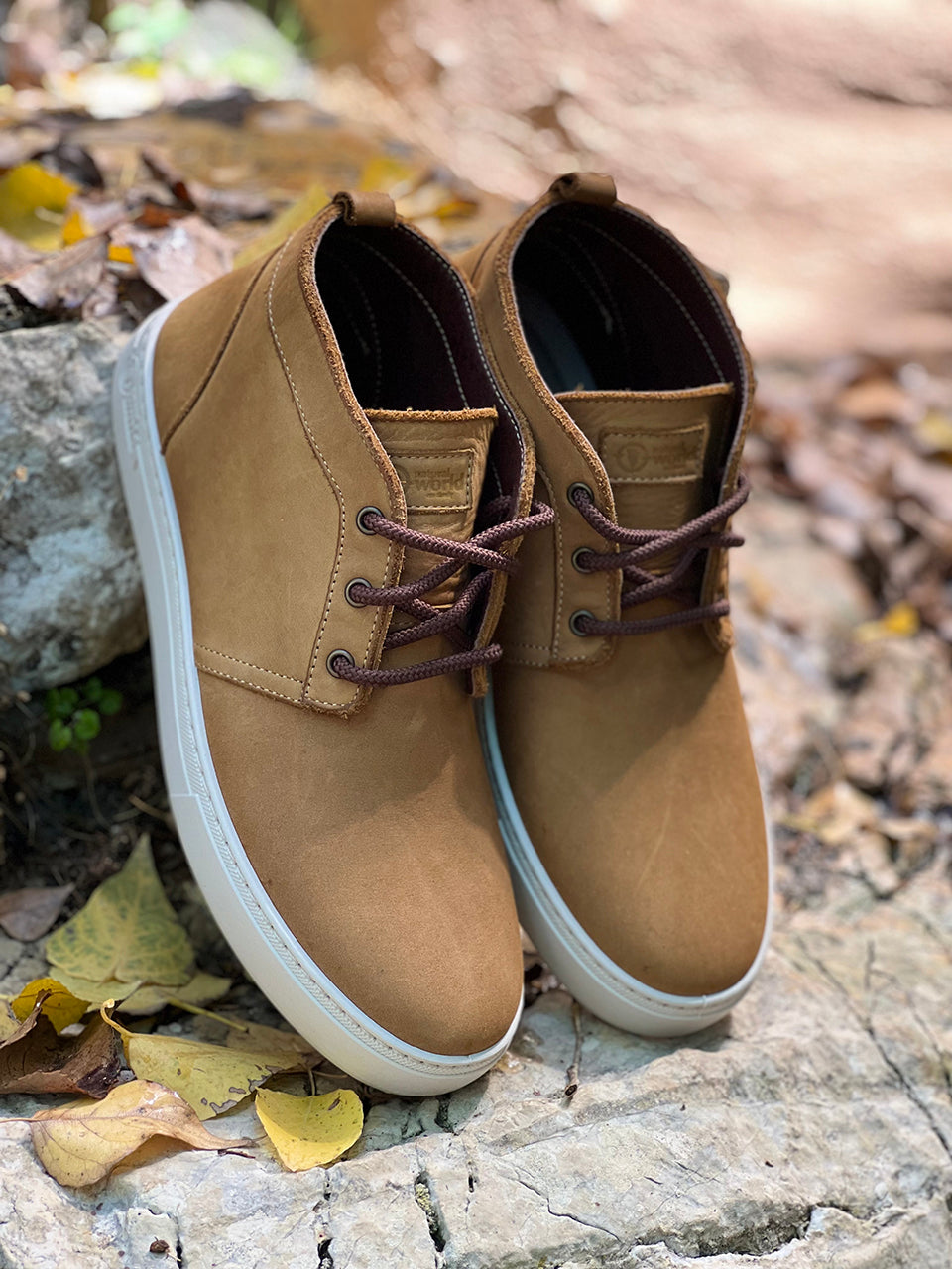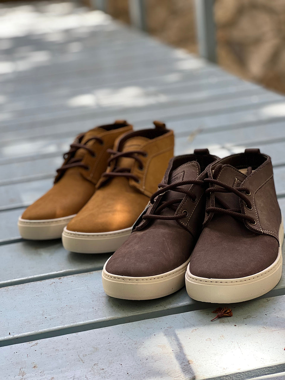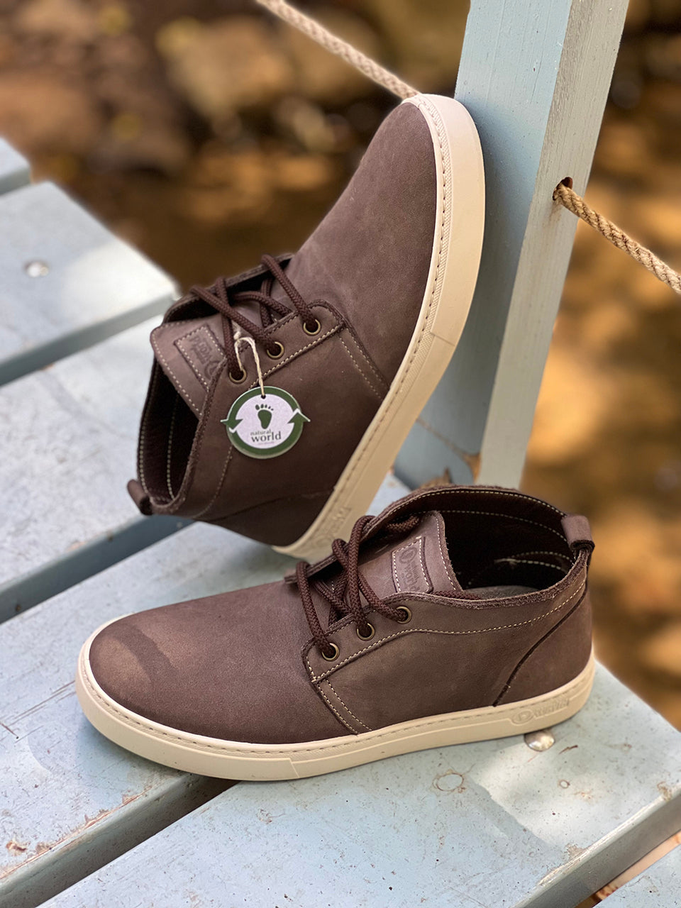 Το επάνω μέρος είναι από συνθετικό δέρμα σουέντ, η σόλα από φυσικό καουτσούκ. Έρχεται σε κουτί από ανακυκλωμένο χαρτόνι, κάτι απαραίτητο για όσους θέλουν να συμβάλουν θετικά στο περιβάλλον.